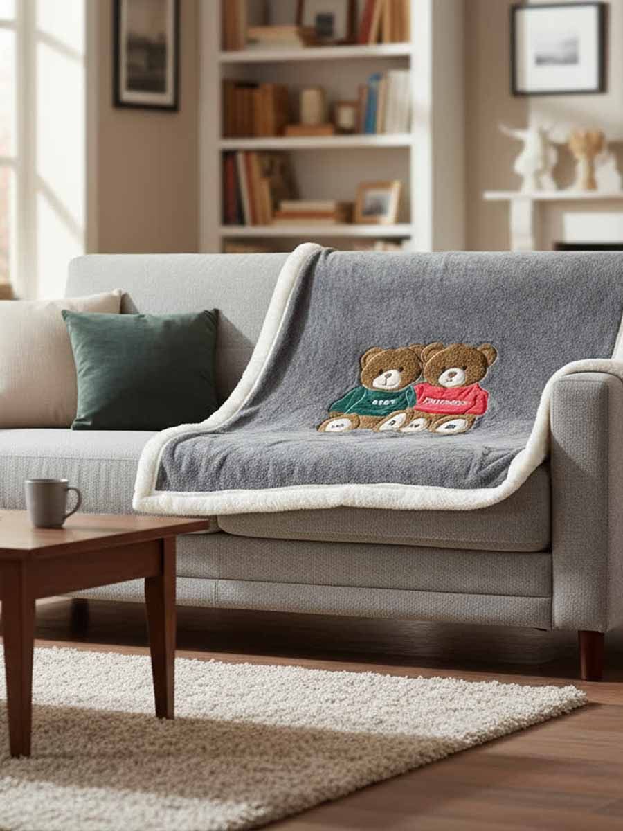 Il Plaid Forever unisce comfort, calore e tenerezza in un unico accessorio. Realizzato in caldo Micropile, è soffice e avvolgente al tatto, perfetto per rilassarsi sul divano o sul letto durante le giornate più fredde. Il lato superiore è impreziosito da un ricamo di due teneri orsetti, mentre il lato inferiore è in morbido agnellato bianco, per un comfort extra.
