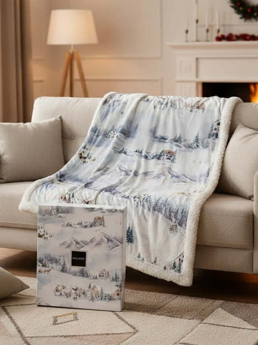 Il design riproduce un paesaggio nordico innevato con chalet, cavalli e boschi imbiancati, evocando l’atmosfera fiabesca delle vacanze in montagna. Perfetto per chalet, case di montagna o per ricreare in città l’atmosfera calda e naturale delle Dolomiti, il Plaid Morbidotto Norvegia unisce stile, comfort e qualità premium, diventando un must-have dell’inverno.