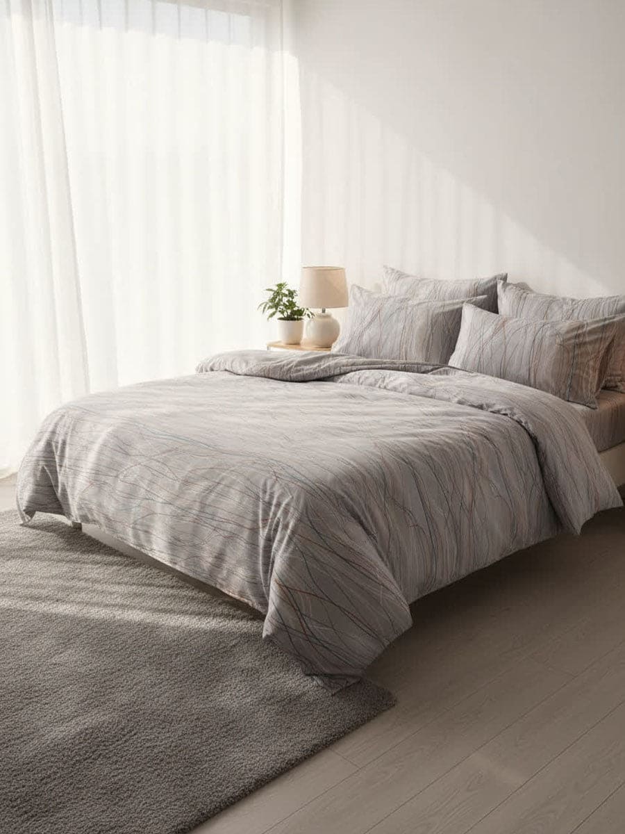 Rinnova lo stile della tua camera da letto con il completo lenzuola Moony della collezione Maè by Via Roma, 60: un perfetto equilibrio tra eleganza, comfort e qualità.