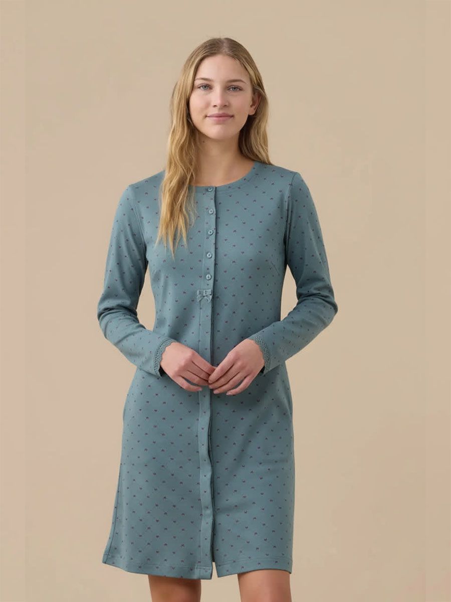 Camicia da Notte Donna in Caldo Cotone con Abbottonatura Frontale Articolo Cuore di Noidinotte