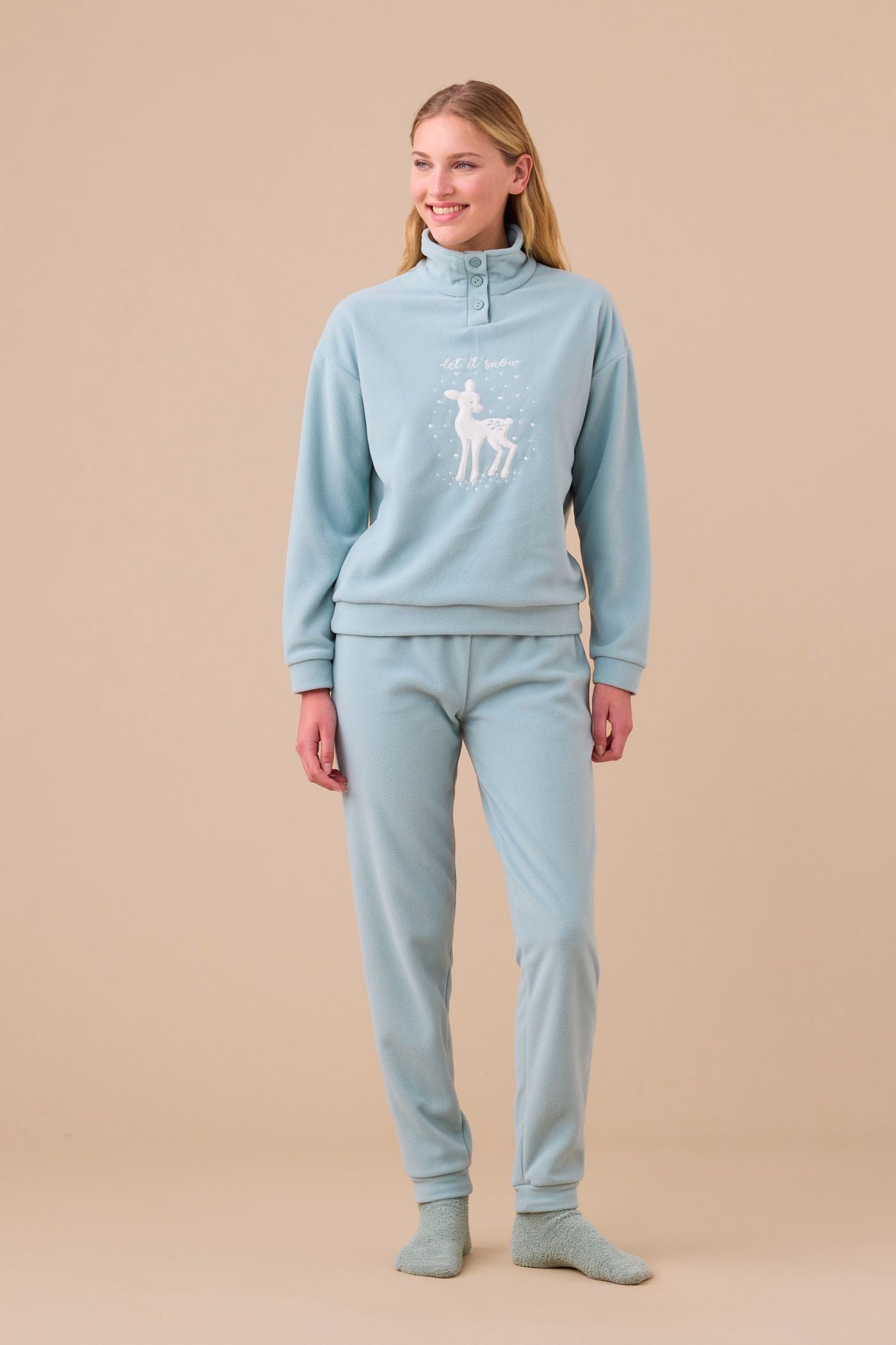Pigiama Donna Micropile Articolo Fiaba di Noidinotte è un morbido e caldo, perfetto per le serate più fredde. Il top a tinta unita è impreziosito da un ricamo centrale con applicazione, che dona un tocco dolce e femminile, mentre i pantaloni con polsini sul fondo assicurano comfort e praticità. Un completo ideale per chi cerca calore e comodità senza rinunciare allo stile.