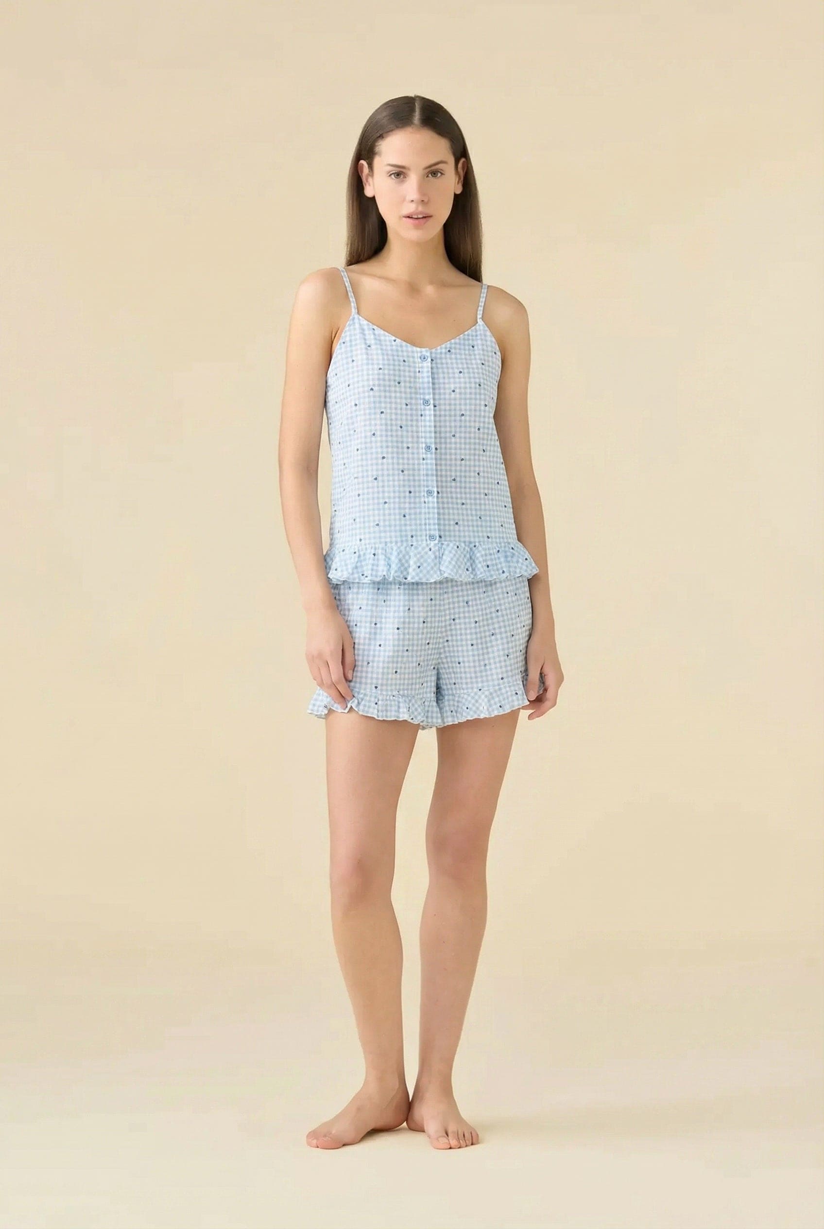 Per le notti più calde, il Pigiama Estivo Donna con Bretellina e Pantalone Corto di Noidinotte offre la massima libertà di movimento. Il top a bretellina (canotta) e il pantaloncino corto (short) sono realizzati in leggero cotone, garantendo una sensazione di freschezza immediata.
