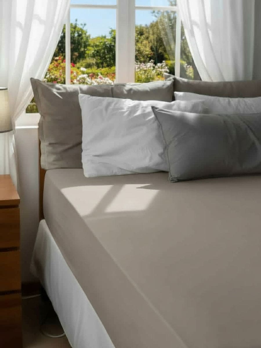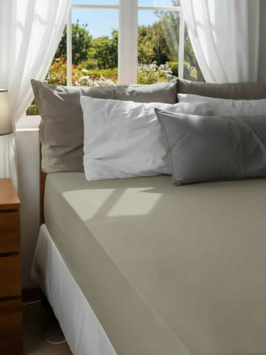Le lenzuola di sotto Essenza sono 100% puro cotone naturale e anallergico, morbido e fresco sulla pelle con colori resistenti a più lavaggi.