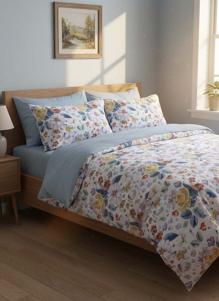 • Parure Copripiumino 100% Cotone Percalle Stampato Malva - Mirabello
