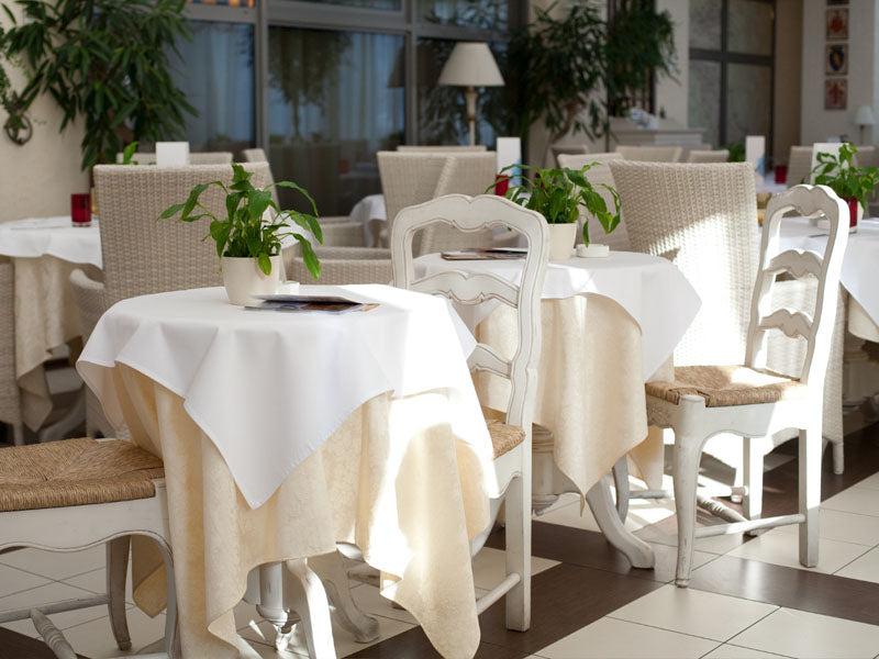La nostra vasta selezione di tessuti ci consente di proporre a strutture ricettive e di ristorazione filati resistenti a continui lavaggi e igienizzabili.