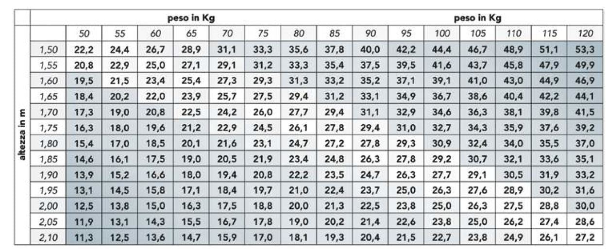 all’altezza. Può risultare utile per orientarsi nella scelta del materasso, consultare la seguente tabella.